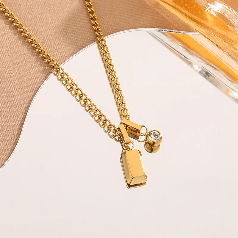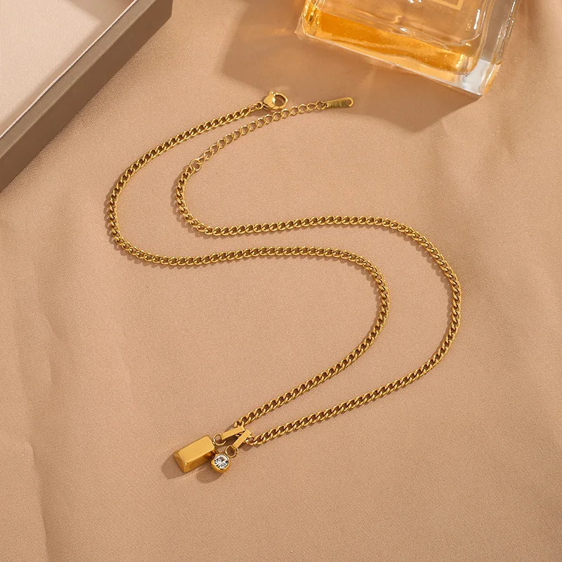 MW Wholesale 18K Gold-Plated Necklace Stainless Steel Fortune Brick Pendant with Zircon, Luxury Women's Jewelry